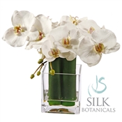 Orchid Phalaenopsis In Square Glass Container 12" white