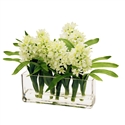 Hyacinths In Rectangular Glass Vase 12" White