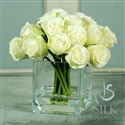 Rose Buds In Square Glass Vase 9" green