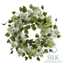 Geranium blossoms in vibrant red are bursting out all over on this wonderful wreath. On a vine type base and 24 inches in diameter. Geranium foliage is included. Faux floral, so no water needed ever!