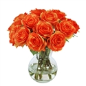 Rose Bouquet In Glass Vase 11" Orange