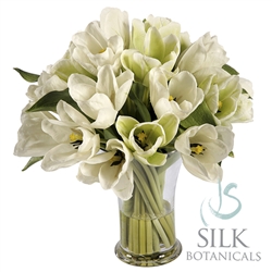 Tulips In Glass Vase 16 in. White