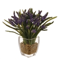 Rose buds in subtle green and white shades are clustered together and placed with care into a clean and classic square glass vase. Liquid Illusion fake water adds additional realism. 9 inches tall.