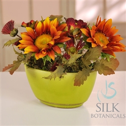 Sunflowers and Cosmos in Green Ceramic Vase 12 in.