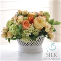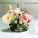 Peonies and roses team up to give you this simple but elegant bouquet style in a silver ceramic vase. 10" in soft shades of white and pink.