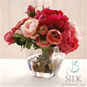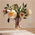 For a casual approach to floral design, we used this very simple clear drinking glass and filled it up with lavender-colored roses and their foliage. For a look that says "fresh from the garden", you can't beat it! 8" tall, 8" in diameter.