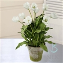 Phalaenopsis orchid in weathered pot, 22" tall, white. So lifelike…and never needs water!