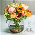 Phalaenopsis orchids are grouped artistically with lime green viburnum in this classic silver ceramic vase. 10" tall.