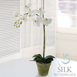 Phalaenopsis orchid in weathered pot, 22" tall, white. So lifelike…and never needs water!